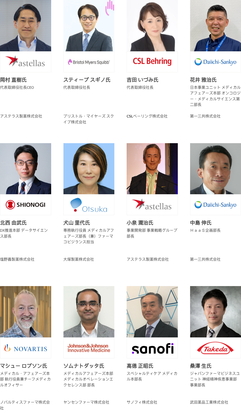 Reuters Events Pharma Japan (2024年9月25日~26日、ウェスティンホテル東京)は、製薬業界のリーダーのために開催される年次フォーラムです。業界をリードするエグゼクティブと、彼らに推薦された有識者の皆様が、次の一歩に向けた洞察と、直近の経験を共有します。