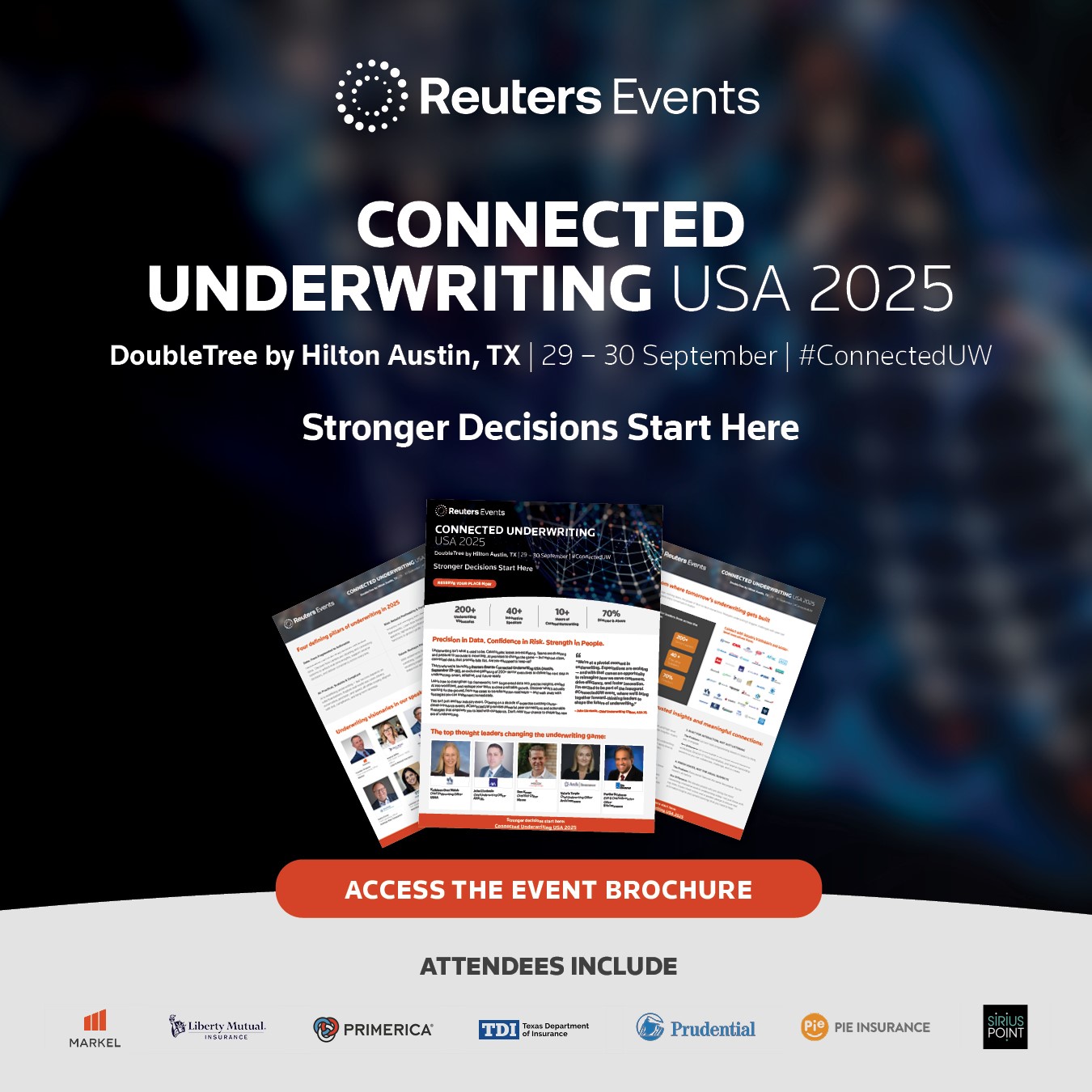 That’s why we’re launching Reuters Events: Connected Underwriting USA (Austin, September 29–30), an exclusive gathering of 200+ senior executives to define the next step in underwriting: smart, adaptive, and future-ready.