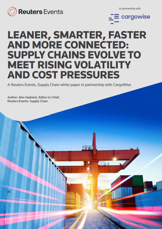 To help inform your decision making, Reuters Events is pleased to release this new whitepaper, Leaner, Smarter, Faster and More Connected: Supply Chains Evolve to Meet Rising Volatility and Cost Pressures, produced in partnership with CargoWise.